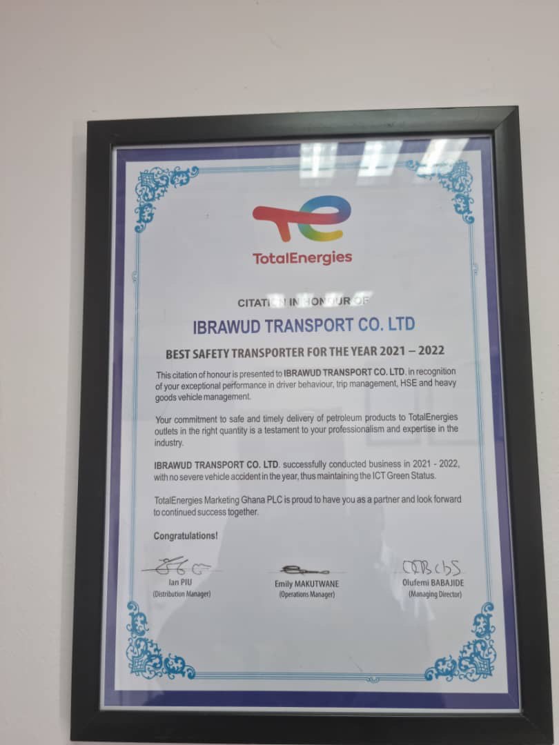 The company is operating a fleet of forty-two (42), 32 trucks are working for TOTAL Energies and the other 10 trucks are working for Ghana Oil GOIL and other businesses.